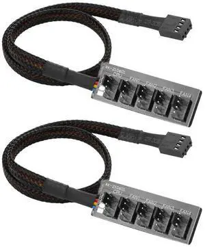 Vszerda PWM Fan Hub Splitter 2 Pack 1 to 5 Way 4Pin Computer CPU Case Fan Splitter Extension Cord for ATX Computer Case 4-Pin and 3-Pin Cooling Fans