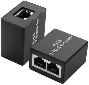 Vszerda 2 Pcs 1 to 2 Ethernet Splitter Adapter RJ45 Network Extender Splitter Female to Double Female LAN Socket Connector for Cat5e/Cat6/Cat8 (Please Use in Pairs)