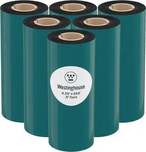 Westinghouse Thermal Transfer Ribbon, 4.33" x 243', 0.5" Core, Compatible with Zebra GC420t, GK420t, GX420t, Premium Wax Resin Enhanced Ink Side Out Wax Ribbon for Thermal Printers, Black, 6 Rolls