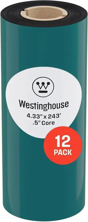 Westinghouse Thermal Transfer Ribbon, 4.33" x 243', 0.5" Core, Compatible with Zebra GC420t, GK420t, GX420t, Premium Wax Resin Enhanced Ink Side Out Wax Ribbon for Thermal Printers, Black, 12 Rolls