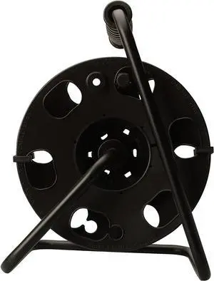 Woods 22849 Metal Extension Cord Reel Stand in Black, Heavy Duty, Quick Snap Together Design, Sturdy and Durable Stand, Easy to Grip Handles, Holds Up to 100 Feet, 14/3 Gauge Cord