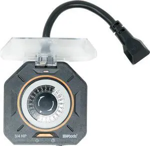 Woods 50124WD Outdoor 24-Hour Heavy Duty Mechanical Timer, 3/4Hp, 2 Grounded Outlets, Black