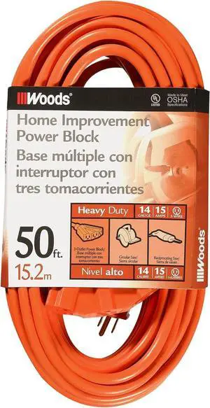 Woods 826 14/3 50-Foot Outdoor Multi-Outlet Extension Cord (Orange)