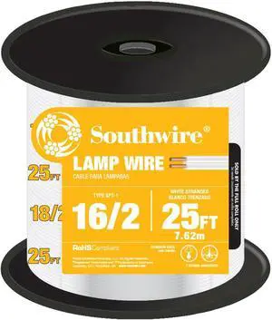 Southwire 55681844 250-Feet 16-Gauge; 2 Conductor 16/2 Type SPT-2 Lamp Cord-Service Parallel Cord with Thermoplastic Insulation; Black