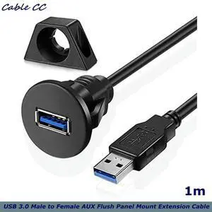 2 Pack Small USB 3.0 Male to Female AUX Flush Panel Mount Extension Cable for Car Truck Boat Motorcycle Dashboard 3ft