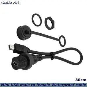 30cm Mini USB 2.0 IP67 Waterproof Cable,Mini USB2.0 Male to Female IP 67 Water Proof Panel Mount Connector Extension cord