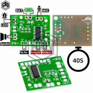3v-4.5v DIY Solderable Audio Recording Module - 40s Loopable Playback with LED Indicator for diy