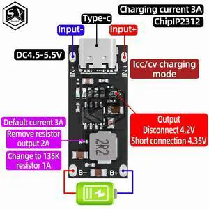 IP2312 CC/CV Mode Type-C USB Input High Current 3A Polymer Ternary Lithium Quick Fast Charging Board 5V To 4.2V