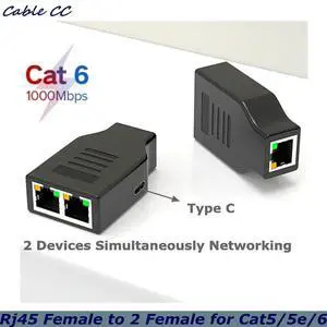 RJ45 Female to 2 Female(2 Devices Simultaneously Networking),1000Mbps Internet Splitters 1 in 2 out, LAN Splitter Type-C Power