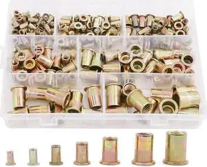 165PCS/Set M3 M4 M5 M6 M8 M10 M12 Rivet Nuts Rivetnut Assortment Kit, Mixed Zinc Steel Finish, Flat Head Threaded Insert Nuts