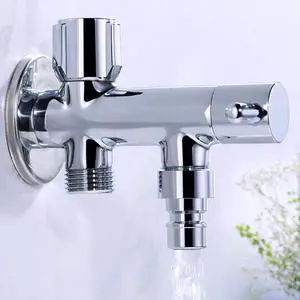 3-Way Angle Stop Valve Shut Off Quarter Turn Water Bathroom Kitchen Shower Washing Machine Plumbing G1/2 Copper Chrome Plating