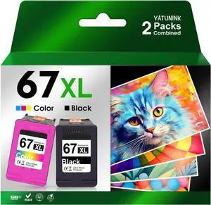 67XL Ink Cartridges Combo Pack Compatible for HP Ink 67 XL Work with DeskJet 4155e 2800e 2755e 2700 2734e 2855e Envy 6455e 6400e 6000 Printer (Black, Tri-Color)