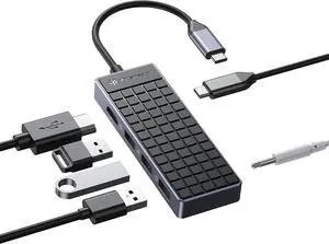 Yottamaster USB C Hub Hdmi Adapter, 6 in 1 USB C Hub Multiport Adapter with 4K HDMI, USBA 3.0, 100W PD, 3.5mm Audio, Compatible with Type C Laptop Devices