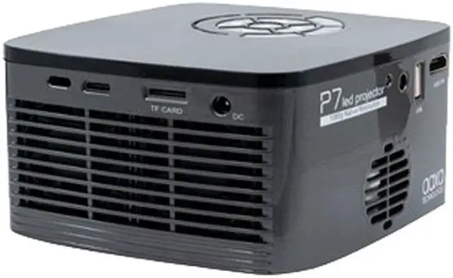 The AAXA P7 portable projector features an onboard media player capable of directly playing videos, pictures, and music through a USB stick or TF card. With two powerful 2 watt speaker and battery, the P7 is a true all-in-one entertainment projector. Additional connectivity features include HDMI compatibility, VGA connector, AV port, and 3.5mm headphone port.