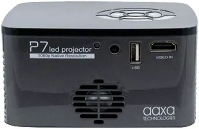 The AAXA P7 Mini HD Projector is a next-generation solid-state mini projector that delivers true native 1080P (1920x1080) performance and operates on both battery and DC power. The AAXA P7 Mini HD Projector incorporates a compact 4th generation Texas Instruments DLP imager featuring a native resolution of 1920 x 1080P or "Full HD". Mated to premium Luminus 30,000 hour LEDs, the P7 produces a bright 600 Lumens and is capable of delivering a 120" projected image anytime, anywhere.
