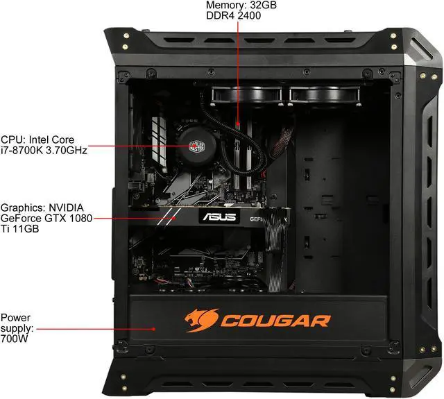 ABS Battlebox Ultimate Panzer-G Gaming Desktop PC NVIDIA GeForce GTX 1080 Ti 11 GB Intel i7-8700K (3.70 GHz) Liquid Cooling (240 mm) 32 GB DDR4 480 GB SSD 2 TB HDD Windows 10 Home 64-Bit ALI229