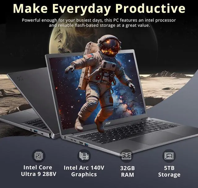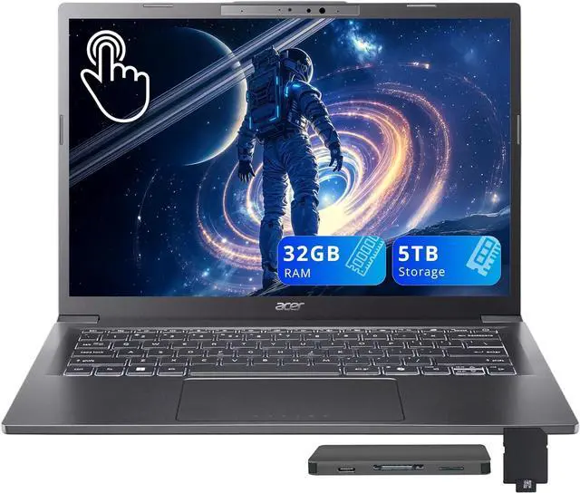Acer Aspire 14 AI 14" WUXGA Touchscreen Laptop, Intel Core Ultra 9 288V, 32GB LPDDR5X, 5TB Storage(4TB SSD+1TB Docking Station Set), Intel Arc 140V, Backlit Keyboard, Win 11, Steel Gray