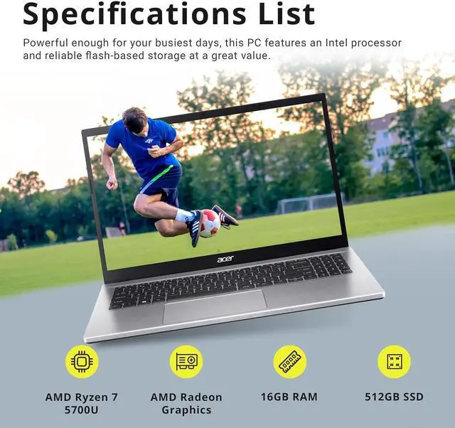 Acer Aspire 3 15.6" FHD Laptop, AMD Ryzen 7 5700U Processor, AMD Radeon Graphics, Numeric Keypad, 720p HD Webcam, Wi-Fi 6, Windows 11 Home, Silver, 32GB Hotface USB Card