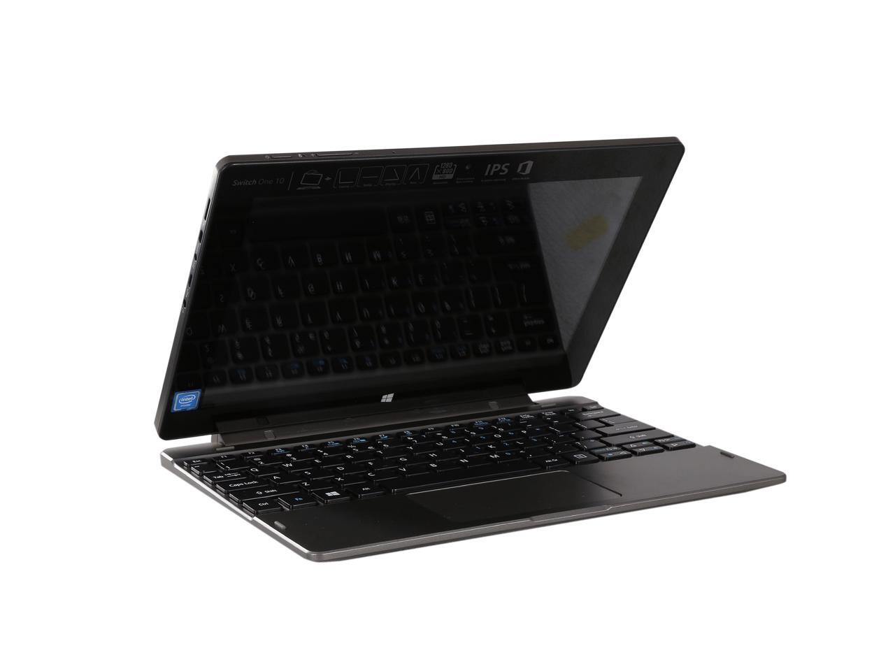 With a detachable keyboard, the Acer Switch One 10 is a 2-in-1 laptop/tablet device that offers your mobility and productivity in a lightweight and elegant package. Easily switch between four modes - tablet, notebook, tent and display modes - to suit your various needs. The quad-core Intel Atom processor gets your everyday tasks done quickly, and the 10.1" IPS touch screen brings everything you see to life with 1280 x 800 resolution and bold, accurate color. A micro HDMI allows you to go big on your large format TV to share photos or enjoy movies and video streaming. Plus, its brushed-metal cover is easy on the eyes and feels reassuringly solid in your hand.