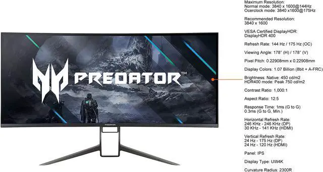 Acer 37.5" 144 Hz / 175 Hz (OC) IPS UW4K Gaming Monitor HDMI, DisplayPort, USB 3.0 X38 Pbmiphzx UM.TX0AA.P01