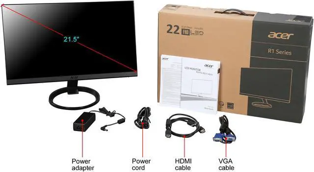 Acer R Series R221Q bid 20" (Actual size 21.5") IPS 4ms (GTG) Widescreen 1920 x 1080 FHD Monitor, Ultra-Sim Framless Design, w/ AcerFlicker Less Technology, Vision Health Technologies