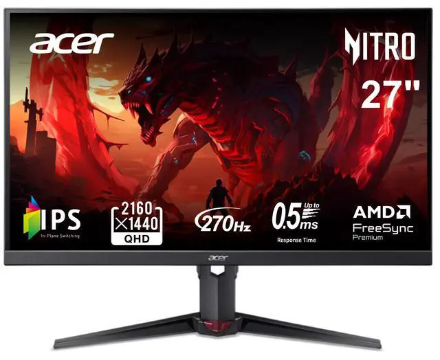 Acer Nitro 27 inch WQHD 2K 1440P 270hz IPS with AMD FreeSync Premium 0.5ms, sRGB 99%, Gaming Computer Monitor XV270U Z1bmiiprx