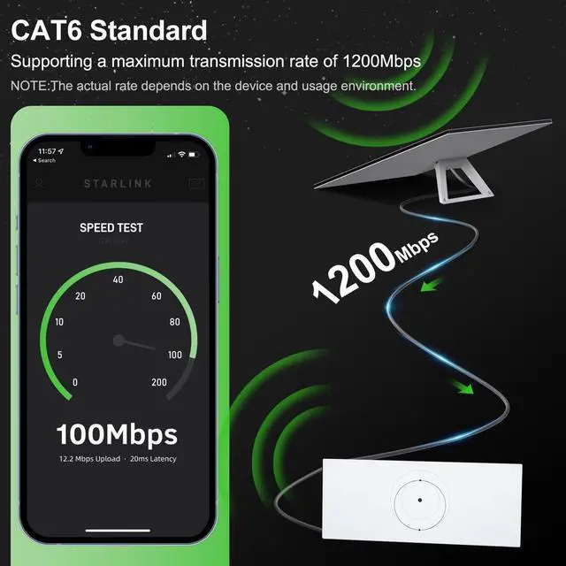 High-Speed Data Transmission:The starlink cable is produced according to the standards of the original and has a bandwidth of 2200 Mpbs, making possible smooth data transfer and streaming without lag.