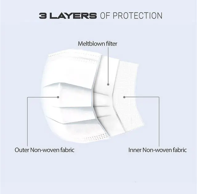 3 Layered Filter The Adesso disposable face mask is made from the triple layer of fabrics; the outer layers is a high-quality non-woven fabric and the center layer is a meltblown filter layer.