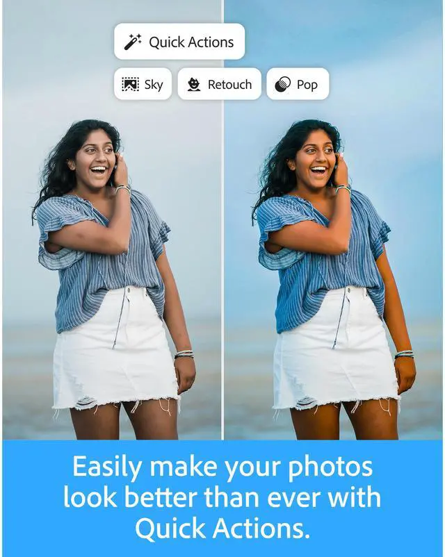 | Feature | Adobe Lightroom is a powerful, cloud-based photo editing and organizing tool designed for photographers of all levels. It offers a streamlined interface and a comprehensive set of features that enable you to create stunning images, manage your photo library, and work seamlessly across desktop, mobile, and web. Lightroom Classic offers robust tools for managing and editng large volumes of images. It provides extensive functionality for detailed photo edits and organization, including advanced features like the Develop and Map modules, and is perfect for precise control over your photo collection and editing on your desktop. Lightroom includes the latest AI features, powered by Adobe Firefly. Generative Remove allows you to remove unwanted objects and distractions in your photos with a single click. Lens Blur enables you to add blur effects to your photos. It highlights your subject and blurs out the rest, mimicking the bokeh effect of high-end lenses. Easily make your photos look better than ever with new Quick Actions. Instantly get suggestions tailored to your photo so you can get the look you want. Make your photos stand out with a robust set of easy-to-use editing tools. Adjust exposure, contrast, and color balance. Crop and straighten images to improve composition and straighten horizons for a polished look. Apply a wide range of presets and filters with just one click to achieve different artistic effects and streamline your workflow. Lightroom comes with 1TB of cloud storage and file synchronization, letting you access your photo library from any device - desktop, mobile, or web. Your photos are backed up to the cloud and available wherever you are – enabling you to edit on the go with your entire photo library at your finger>ps. |