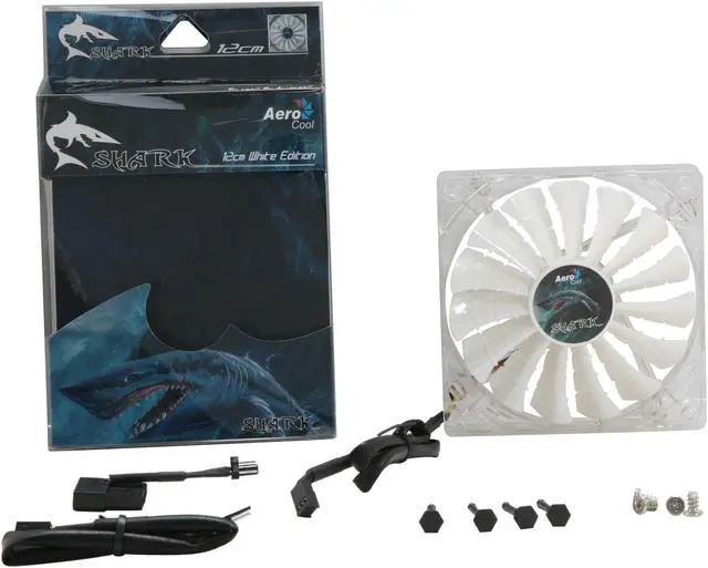AeroCool Unique Shark Fin like blade design high performance high airflow Shark 120mm White LED fan. Total 15 fan blades generate Extreme High Air Pressure and High Air Flow for maximum cooling effect. Generate airflow of 83CFM at only 26.5dBA. Innovative
