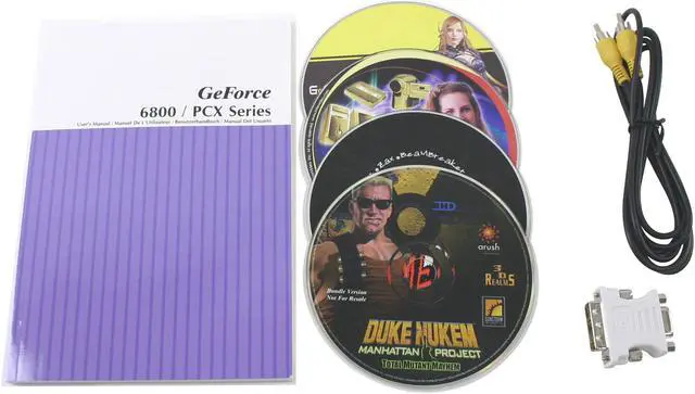 | Package Contents | S-Video Cable, DVI to VGA Adapter, Manual, Driver CD, Games |