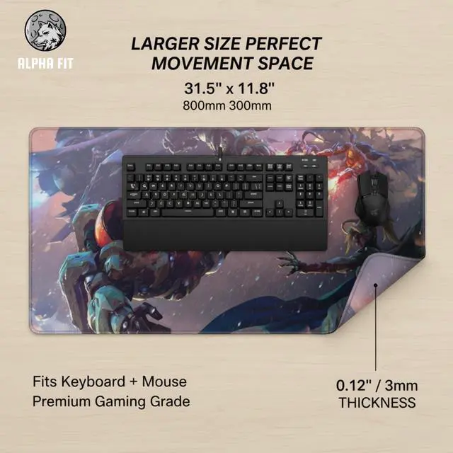 Say goodbye to running out of mouse space during critical moments. Measuring a spacious 31.5" x 11.8" (800mm x 300mm), this large mouse pad covers your entire main desktop area. It comfortably accommodates a full-sized mechanical keyboard and your gaming mouse, with plenty of room left for wide, sweeping arm movements. This extended design also unifies your desktop, creating a clean, organized look that hides uneven desk surfaces.