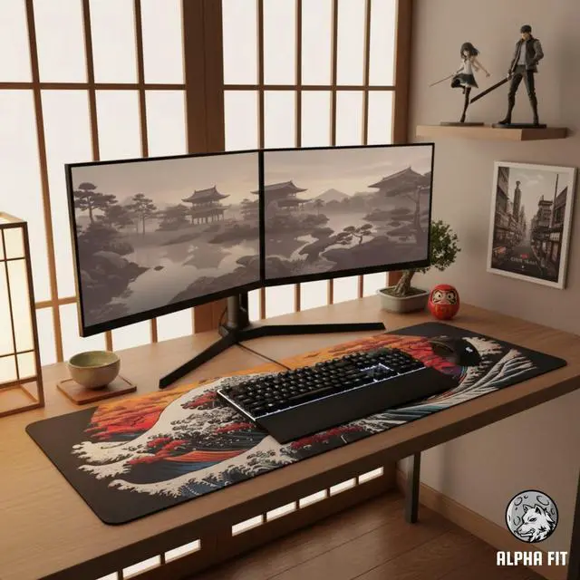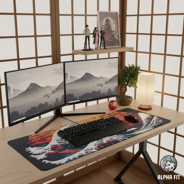 Transform your desktop from a mundane workspace into a gallery of inspiration. Bridging the gap between professional gaming gear and interior decor, the Alpha Fit Great Wave collection pays homage to traditional Ukiyo-e culture while delivering esports-grade performance. Whether you are a gamer, a graphic designer, or a minimalist, this Japanese art desk mat adds a touch of Zen and sophistication to your daily routine.