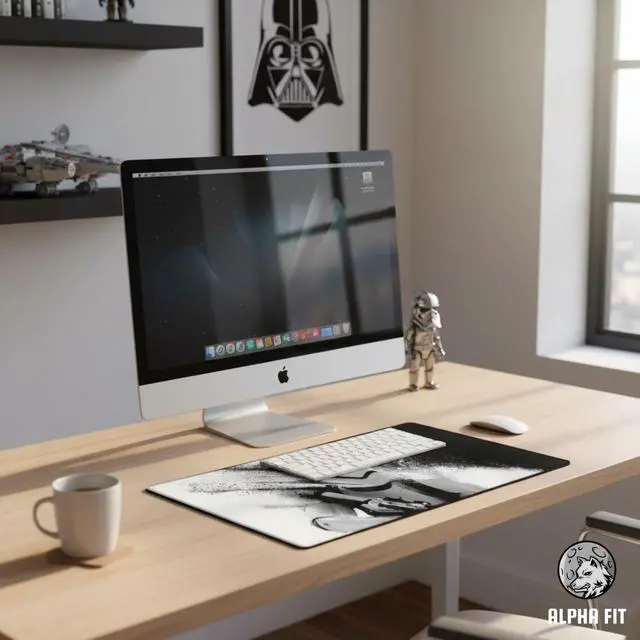 Transform your battle station with the striking aesthetics of the Alpha Fit Star Wars Gaming Mouse Pad. This specific design features a dramatic, artistic interpretation of a Stormtrooper helmet disintegrating into digital dust. The monochrome black-and-white color palette makes this large mouse pad an incredibly versatile choice for minimalist setups. It captures the gritty, intense atmosphere of the galaxy's endless war, serving not just as a peripheral, but as a statement piece for any fan of the Dark Side.
