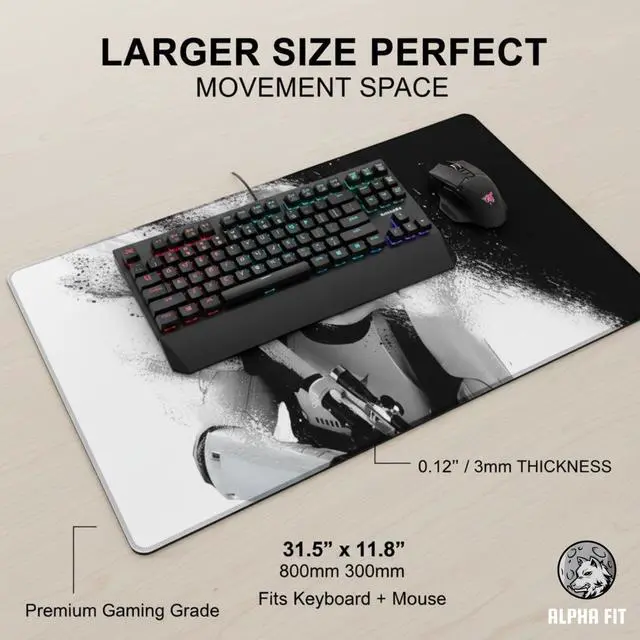 Alpha Fit Star Wars Gaming Mouse Pad XXL (31.5" x 11.8") - Stormtrooper Shatter Black & White - Large Mouse Pad Extended - Sci-Fi Galaxy Empire Desk Mat 12