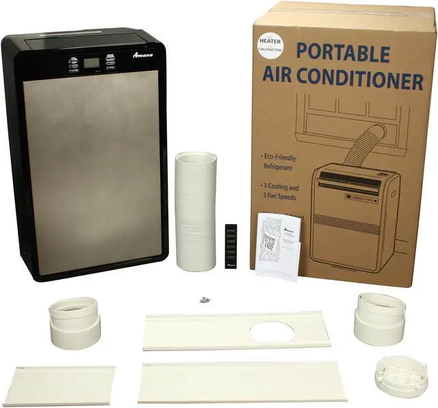 | Description | The Amana APN12HJ 12,000 BTU heat & cool portable air conditioner is perfect for use in a variety of locations. It provides cooling comfort and removes excess moisture from the air. The APN12HJ 12,000 BTU heat & cool portable air conditioner can be used in places where central air conditioning isn't cost effective or possible to install. Cools and Heats The Amana APN12HJ 12,000 BTU heat & cool portable air conditioner not only features 12,000 BTUs of cooling power, but 11,500 BTUs of heating power as well. Allows Widespread Airflow The APN12HJ 12,000 BTU heat & cool portable air conditioner discharges air from multiple positions, which allows widespread airflow. Exhausts Hot Air This portable air conditioner comes with a single hot air discharge hose that exhausts hot air out of the area you're cooling. Easy Setup The Amana APN12HJ includes an exhaust window kit that is easy to set up so cooling comfort can begin as soon as possible. Specifications - Certifications: UL - Programmable Timer: Yes - Refrigerant Type: R410A - Auto-Evaporative System: Yes - Adjustable Air Louvers: Yes - Air Filter: Yes - Built-In Air Purification System: Yes |