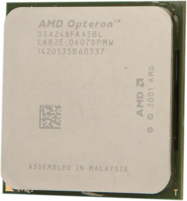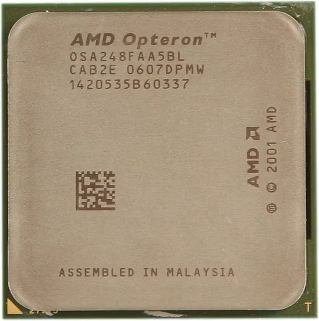 The AMD Opteron 248 SledgeHammer is a single-core server processor that comes in Socket 940 package. Manufactured with 130 nm process technology, this unit runs at 2.2GHz clock frequency and features 800 MHz HT speed and a 1MB L2 Cache. An array of technology innovations, such as 64-bit support, integrated memory controller and HyperTransport powers up your experience with enhanced performance, lower latency and fast response.