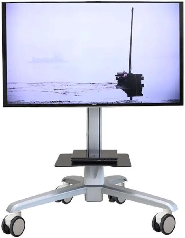 This Amer Mobile Display Cart supports industry standard mounting pattern 400 x 400mm or less. The Display module can be swiveled, tilted and rotated allowing creative flexibility and the ability to rotate your display in both Portrait and Landscape mode.