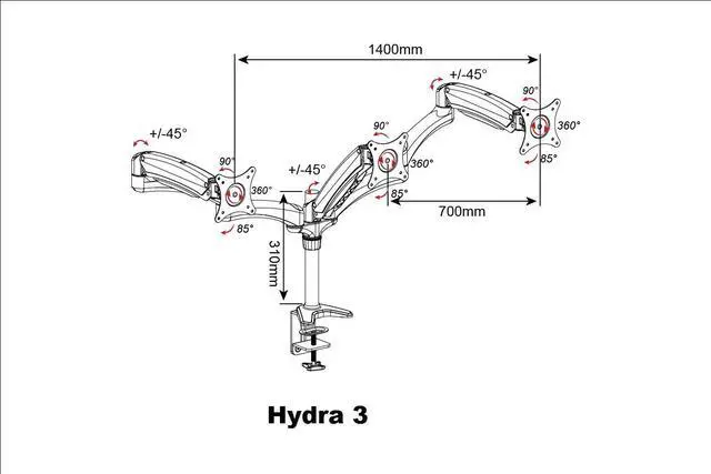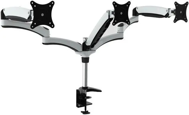 Triple articulating Monitor Mount. Supports 3 monitors 15 to 28" each. Spring Loaded arms provide flexibility in movement and monitor orientation. VESA standard