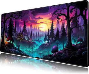 Mystic Forest Desk Mat Purple Cute Large Mouse Pad Extended Gaming Mousepad XL Big Aesthetic Desk Pad Cool Anime Keyboard Mat Laptop Desktop Mouse Mat 31.5''X11.8''