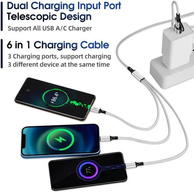 ![Alt view image 7 of 7 - 6 in 1 Multi Charging Cable [3Pack 4FT] Nylon Braided Multi Fast Charging Cord USB A/C to Phone USB C/Micro USB/i-P Connector Universal Multiple Phone Charger](https://c1.neweggimages.com/productimage/nb640/C3H5D2601020L8GDE5D.jpg)