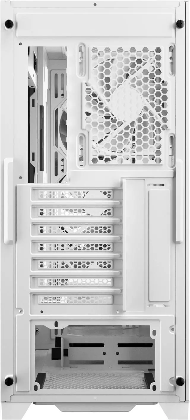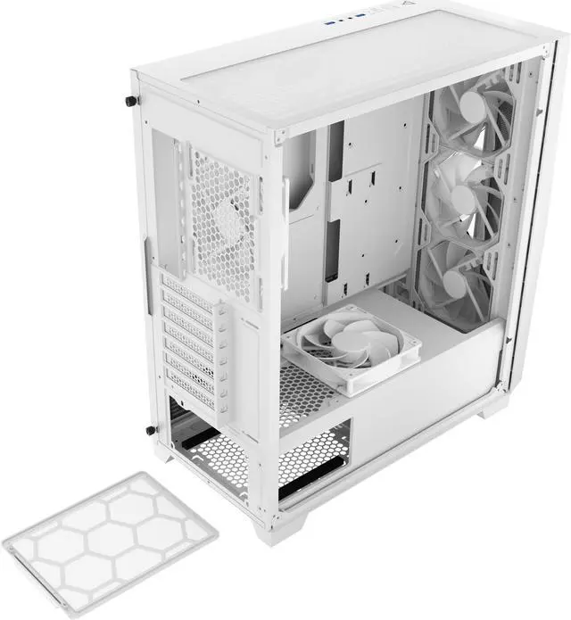The all-new Dark Fleet DF800 FLUX White Mid-Tower ATX gaming case forms a different visual effect by its geometrical mesh design and mirror surface materials. The DF800 FLUX White provides the best showcase for your gaming gear with its full-view tempered glass side panel.