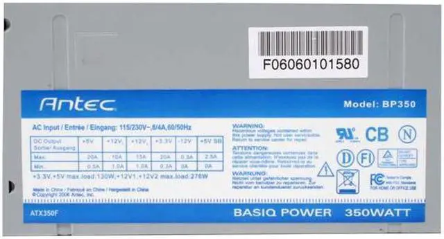 | Connectors | 1 x Main connector (20+4Pin) 1 x 4 Pin ATX 12V 4 x Peripheral 1 x SATA 1 x Floppy |