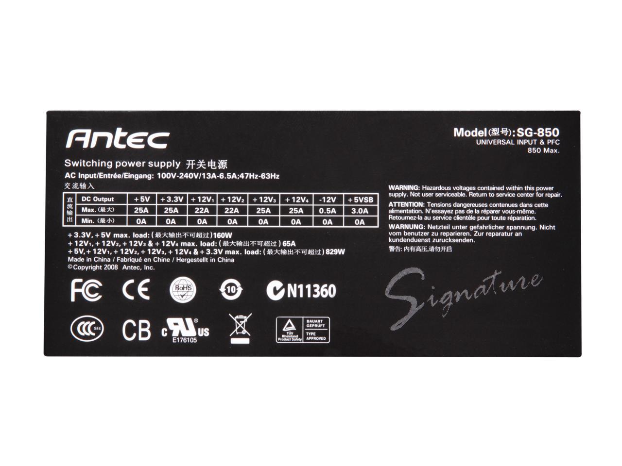 850W Maximum PowerThe Antec Signature SG850 PSU provides a maximum power of 850W for a safe, reliable output for high-end computer systems.