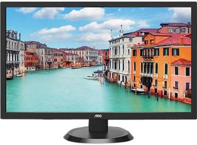 27" Class Widescreen, 16:9 Aspect Ratio, 27" Viewable Image Size Diagonal. Special Features: User Friendly Graphical OSD Menu, VESA 75mm Wall Mount Compliant, Kensington Security Slot, Includes AOC's eSaver software. Connectors: 1xVGA, 1xHDMI. Response Time: 5ms. Brightness: 250cd/m . Contrast Ratio: 20M:1