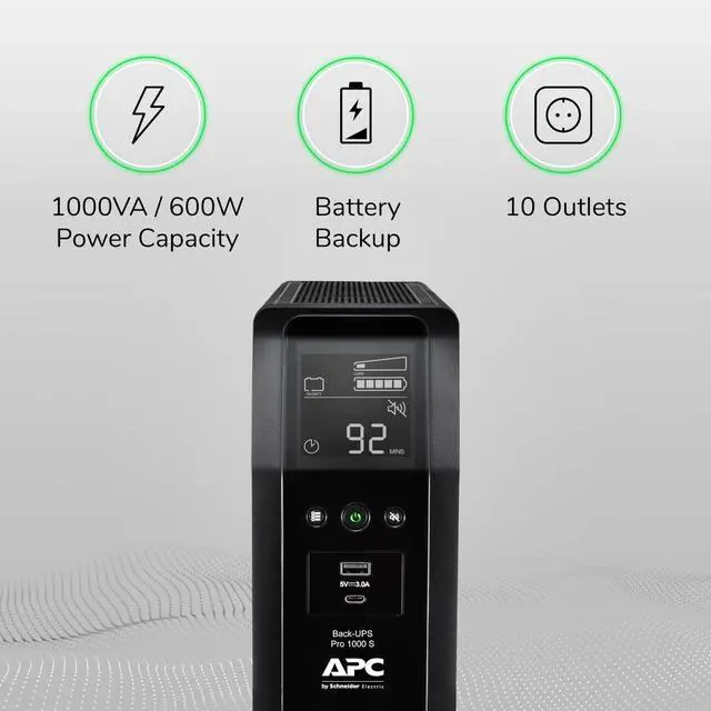This APC UPS Battery Backup provides surge protection for wireless networks computers and other electronics. It is designed to offer reliable power during outages and unsafe voltage fluctuations safeguarding your devices from power surges and spikes. The APC Back-UPS PRO series is an essential component for protecting your computer external hard drive and routers ensuring data integrity and connectivity.
