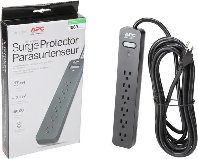 | Features | 1080 Joules surge protection energy rating 6-outlet surge protector 15-foot power cord Millions of people trust APC to protect their valuable electronics You can enjoy maximum protection, safety, convenience, and reliability Protection Working LED, a power switch and rear wall-mount key holes so you can install this surge protector in out of the way spaces |