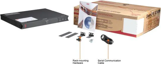 APC Smart-UPS SC450RM1U, CD with software, Rack Mounting brackets, Smart UPS signalling RS-232 cable, User Manual