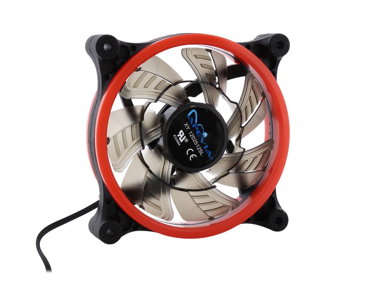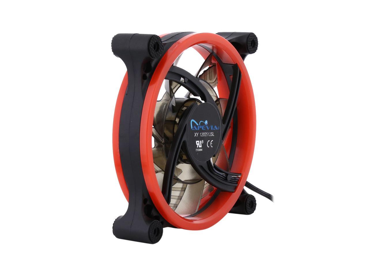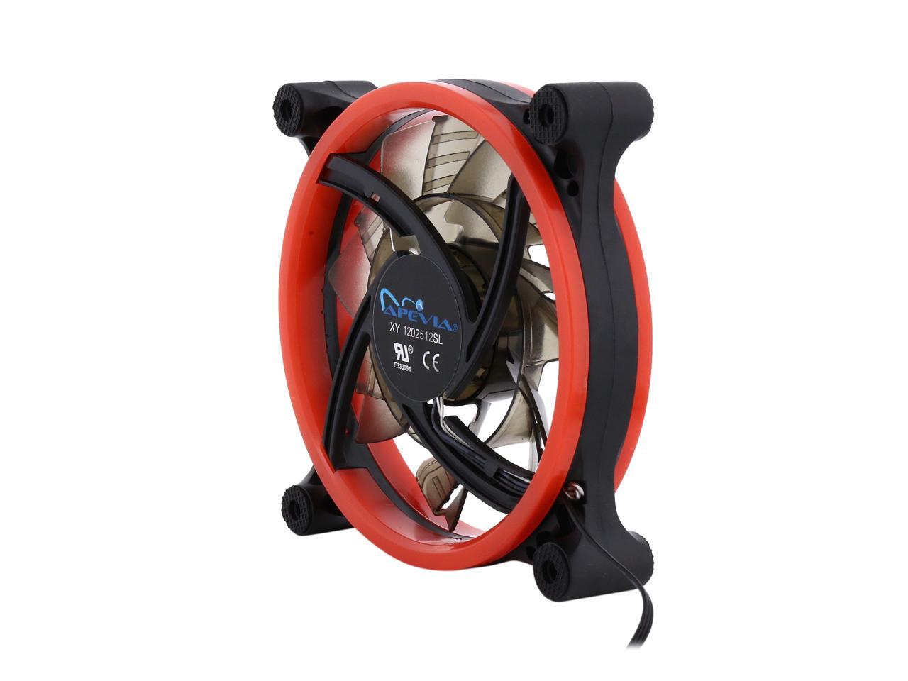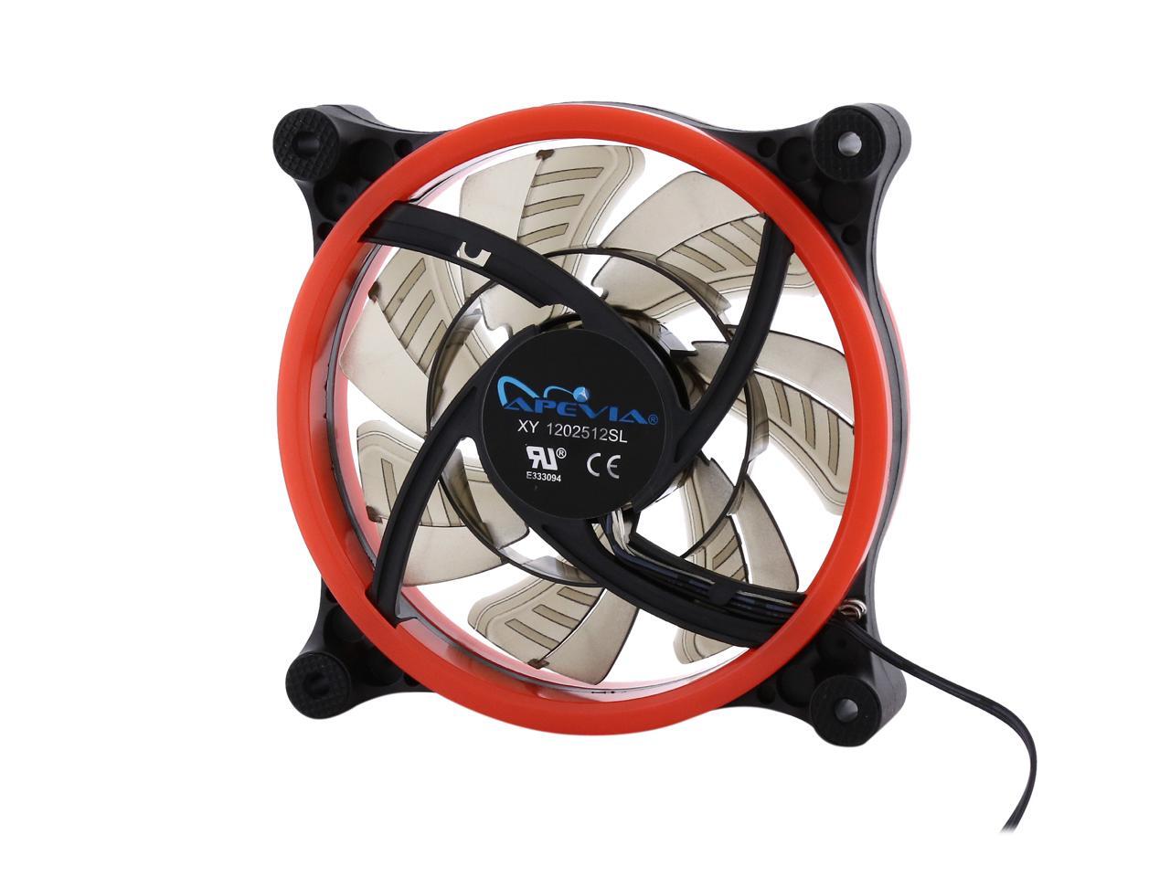 | Features | Apevia 120mm case fan with 32 red led lights (3 pk) Two colored rings for a bright glow 32 leds within the rings give a solid red glow to the fan 7 stylish black blades and black frame Four anti-vibration pads to reduce noise |