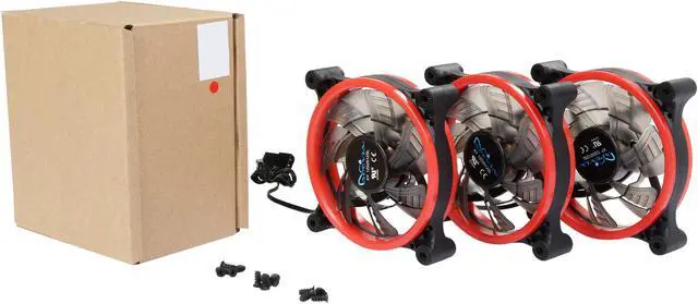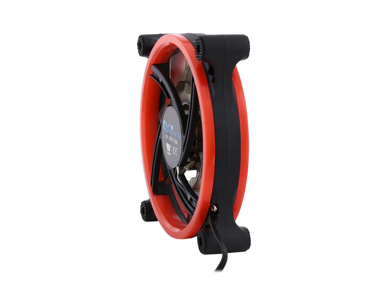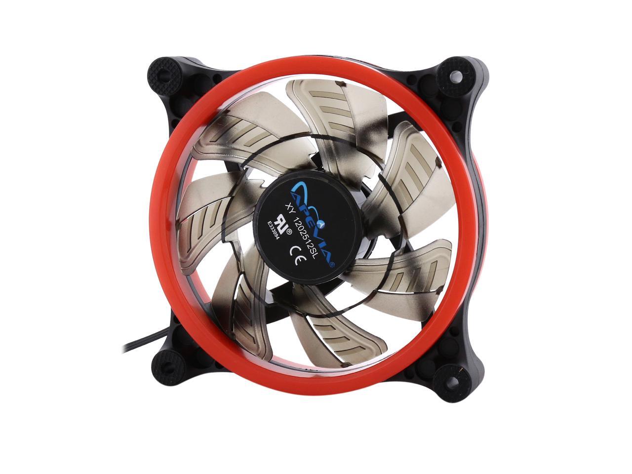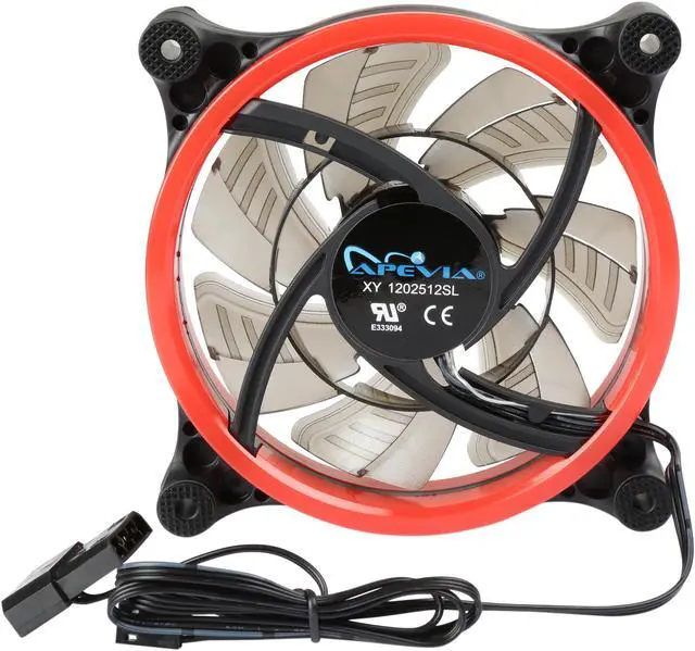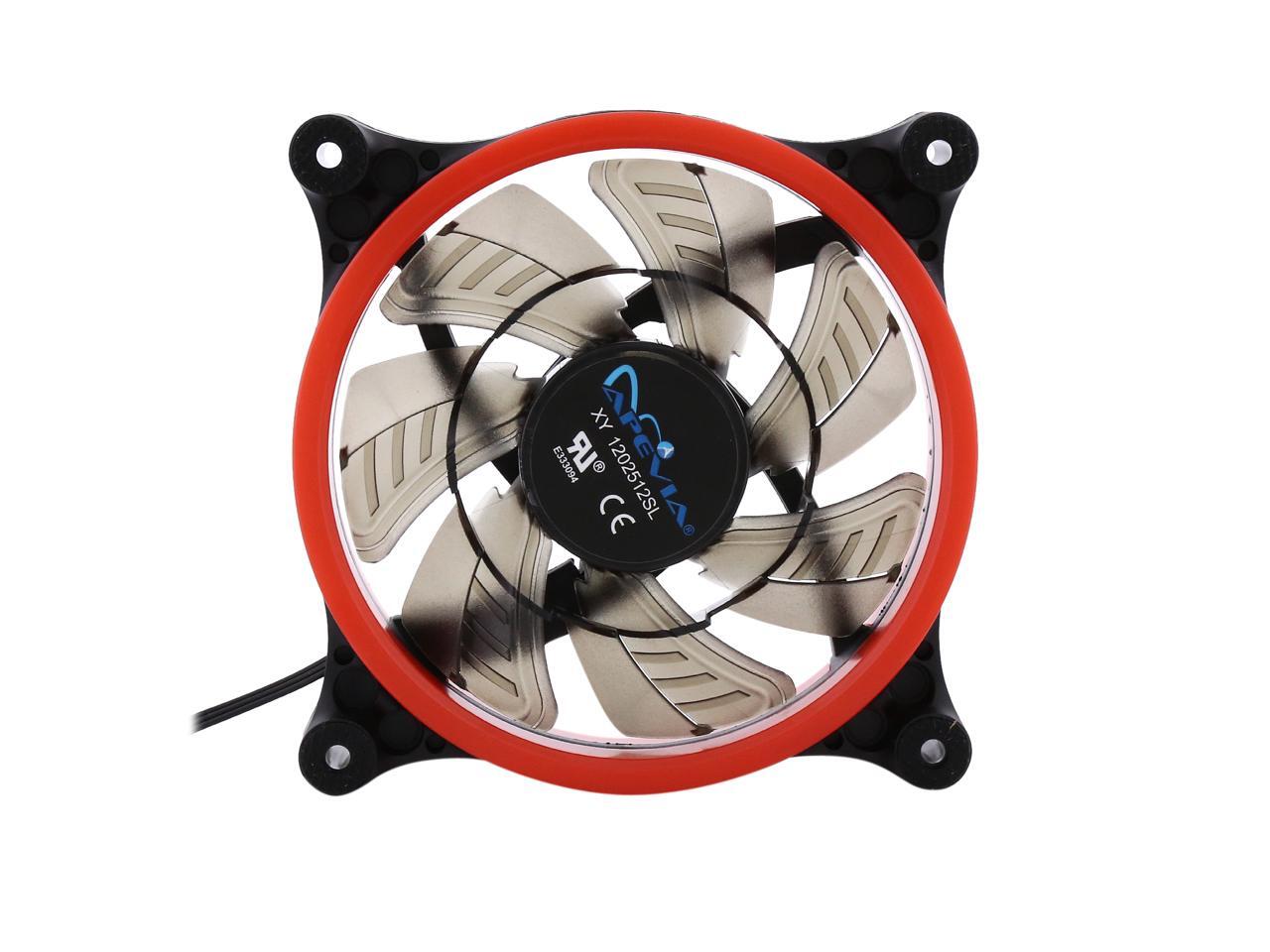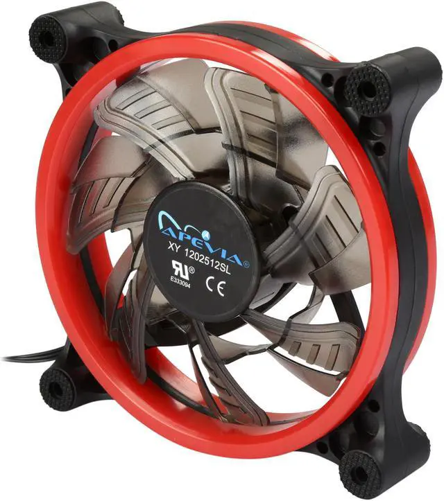 | Features | Apevia 120mm case fan with 32 red led lights (3 pk) Two colored rings for a bright glow 32 leds within the rings give a solid red glow to the fan 7 stylish black blades and black frame Four anti-vibration pads to reduce noise |